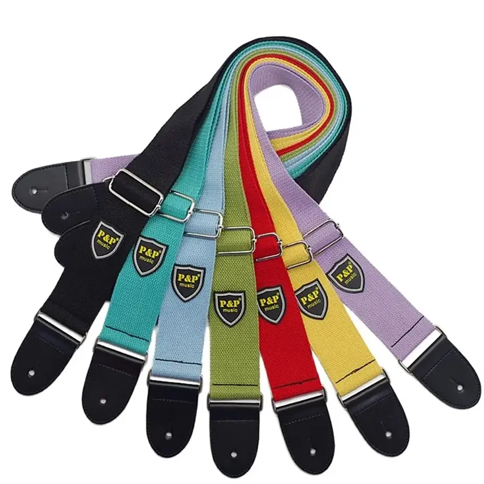 Cinto de guitarra ajustável tecido algodão acústico elétrico guitarra folk baixo cinta cinto com extremidades de couro