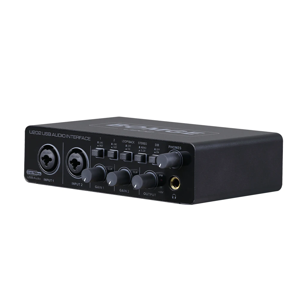 BOMGE U202 USB Interface áudio com pré-amplificador de microfone Portas XLR/TSR/TS, 48V, Resolução 32-Bit/192kHz para gravação em computador, Streaming ,Podcasting