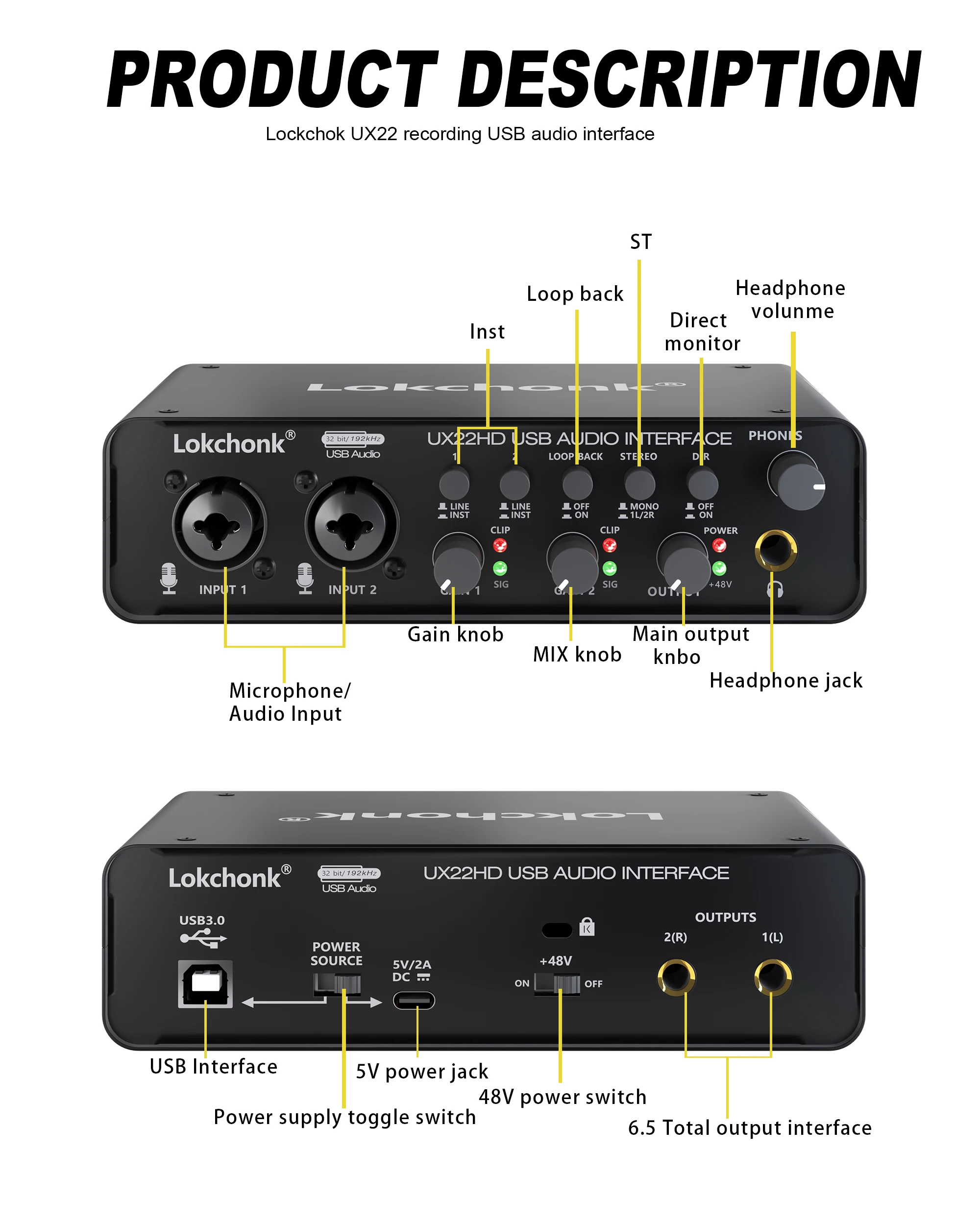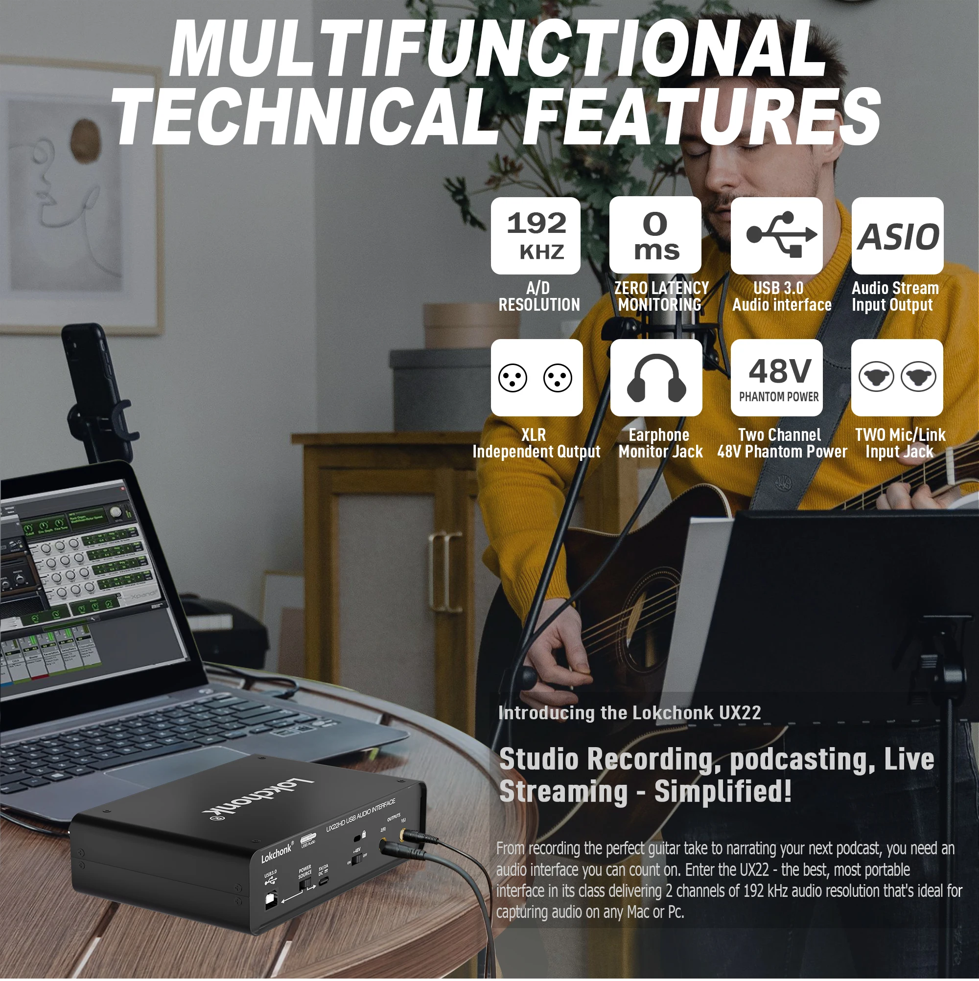 Suporta áudio de alta resolução de até 32 bits/192 kHz para monitoramento e audição profissional. Possui entradas de canais esquerdo e direito para conectar microfones e instrumentos para produção musical. Transmita 2 saídas de 2 entradas para o seu computador com latência ultra baixa. Sua gravação manterá toda a sua qualidade de som, para que você possa ouvir todos os detalhes da pista enquanto a reproduza.