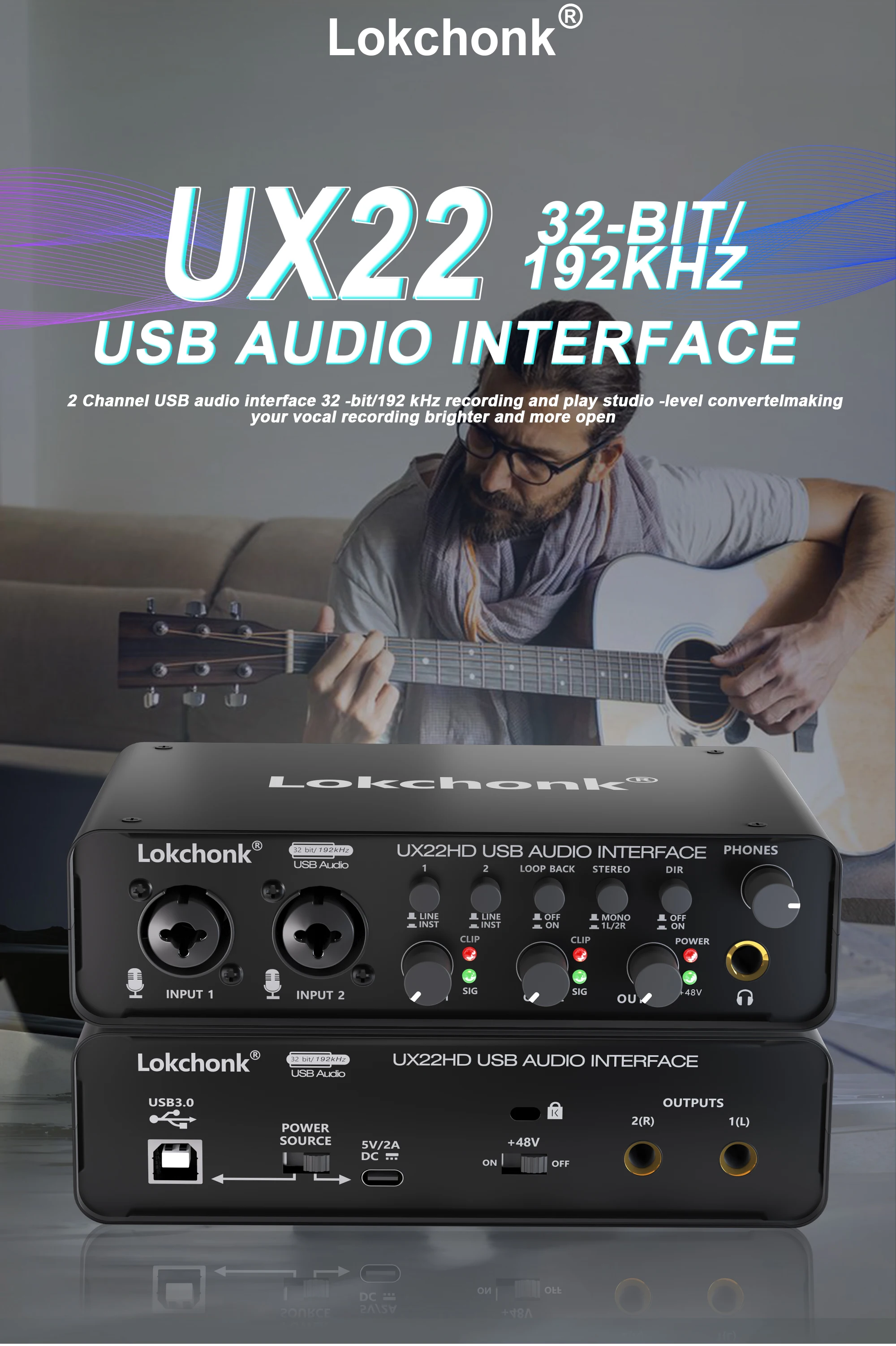 Esta interface de áudio USB possui uma alimentação fantasma de 48V integrada e um pré-amplificador de microfone. Pode ser usado com um pré-amplificador boutique separado, com muito espaço de cabeça, baixa distorção e ruído ultrabaixo. Ambos os pré-amplificadores de microfone possuem botões de controle de volume independentes, indicadores de sinal, indicadores de sobrecarga e botões de desbotamento rápido. Ao usar microfones condensadores, você poderá injetar excelente clareza e detalhes em suas gravações. Perfeito para pegar uma guitarra ou gravar vocais