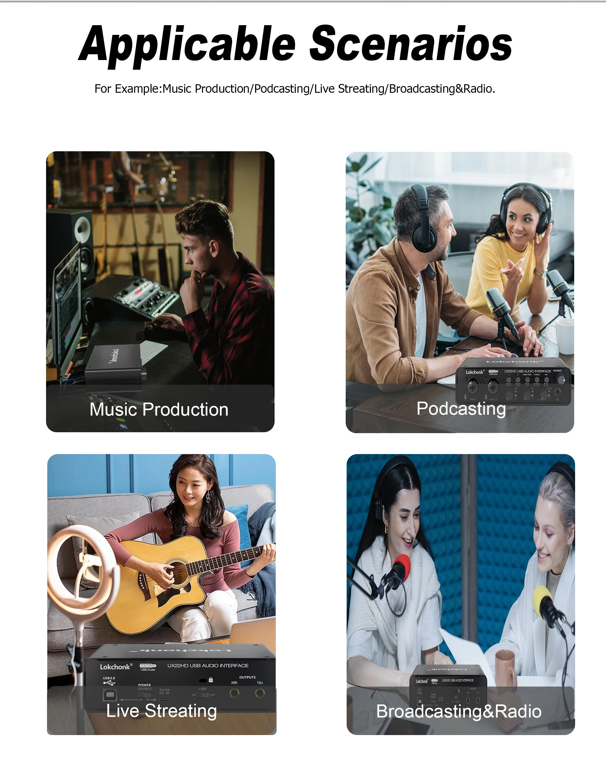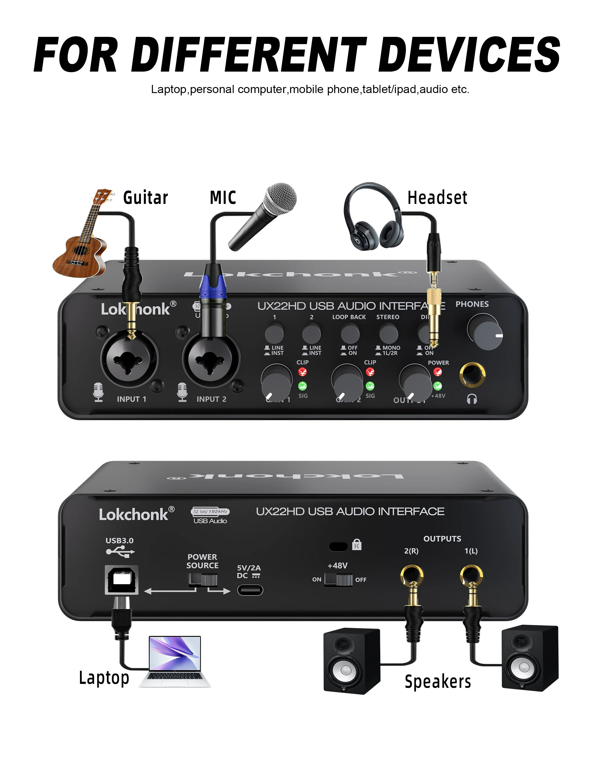 A interface de áudio USB 2X2 suporta Mac OS e Windows XP ou superior, sem necessidade de baixar nenhum driver. Grave, transmita e transmita áudio de alta qualidade de forma rápida e fácil. Compatível com software de gravação popular, incluindo Avid Pro Tools, Ableton Live, Steinberg, Cubase e muito mais. O tamanho pequeno e ultra portátil permite levá-lo para qualquer lugar, oferecendo opções flexíveis para sua produção musical.