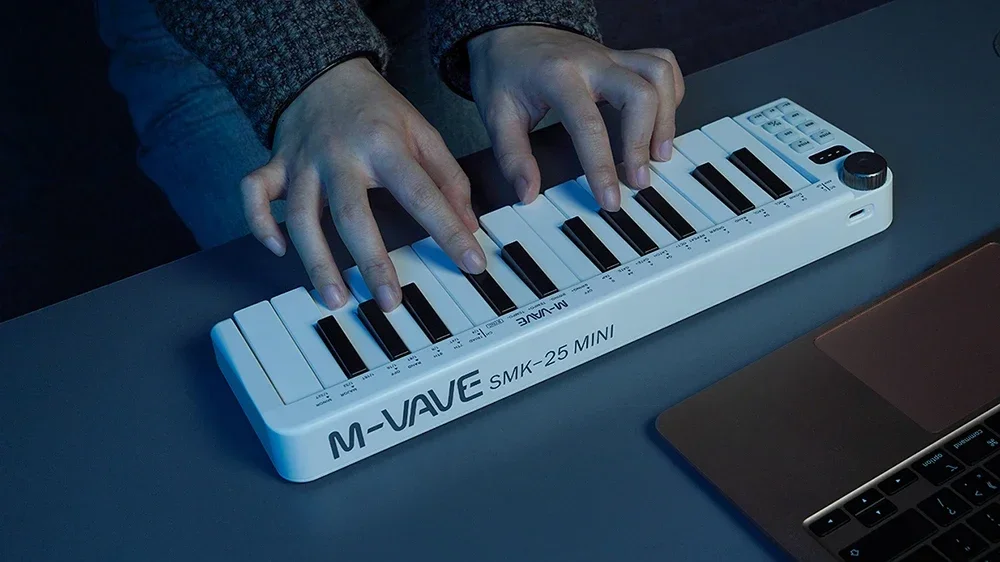M-vave smk-25 mini teclado midi recarregável piano 25 teclas teclado instrumento suporte conexão sem fio/usb peças portáteis.
